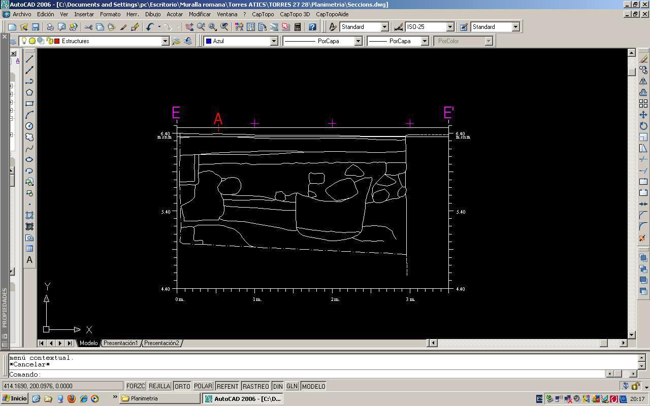 Així doncs, podem jugar amb trames i colors que fan que els plànols resultants quedin més visuals i entenedors. Per exemple solem distingir per capes de colors les diferents restes documentades en funció de les etapes cronològiques a les quals les hem adscrit, tenint així un plànol de conjunt de totes les restes documentades o únicament del període que ens interessa treballar. O també podem treballar els plànols en diverses escales, la que més ens convingui en cada moment i podem fer plantes generals de tota l’excavació o de detalls concrets ens funció de cada necessitat concreta.