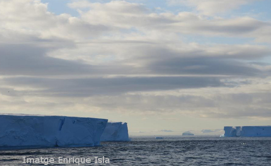Aprofitem la travessa per acabar de posar a punt els equips i els laboratoris per començar els mostratges. Avui farem la nostra primera estació a la plataforma continental al nord de l’Illa Joinville. Davant seu ens van rebre uns espectaculars icebergs tabulars, que són més comuns a l’altre costat de la Península Antàrtica, al Mar de Weddell, des d’on provenen impulsats pel poderós Gir de Weddell. Així es coneix el corrent principal que segueix el curs de les agulles del rellotge al llarg d’aquest gran golf al sud de l’Atlàntic. Finalment ens sentim a l’Antàrtida!