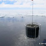 Després d’ells ha entrat en acció l’equip d’oceanografia física del AWI i la seva CTD amb el qual s’encarregaran d’estudiar les propietats físiques de la columna d’aigua, principalment temperatura i conductivitat, que serviran per calcular la salinitat i la velocitat del so. També mesuraran la fluorescència i la terbolesa, que són característiques associades a la biomassa del fitoplàncton i a les partícules en suspensió, respectivament.