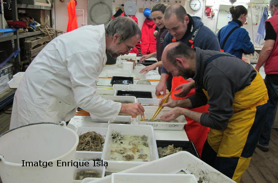 Seguint amb les captures, es va llançar la xarxa d’arrossegament Agassiz, amb la qual es van obtenir mostres de les comunitats bentòniques, i això ha posat gairebé tothom a treballar en l’anomenat “laboratori humit”.