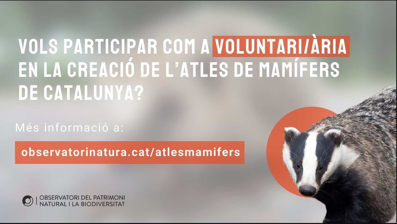 L’Observatori del Patrimoni Natural i la Biodiversitat, sota l’empara de la Generalitat de Catalunya i diverses institucions científiques del país, vol elaborar un Atles dels mamífers de Catalunya per conèixer la distribució de totes les espècies de mamífers salvatges que habiten a Catalunya, tant terrestres com marines.