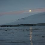 Mira, ara mateix, que són les 10.30 de la nit però encara és de dia, estem a -0.5ºC. Però aquest matí, amb la brisa que venia de la glacera, estàvem a -7ºC. L’aigua està a -0.6ºC. Ja deus saber que l’aigua de mar, com que és salada, congela a més baixa temperatura que l’aigua dolça.