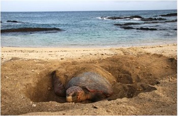 Una tortuga babaua fa un niu a la platja d’Ilheu de Cima on acostumem a acampar per treballar amb els ocells marins. Normalment fan els nius de nit, però de vegades alguns animals arriben a sortir de dia. La sobrepesca no només afecta els peixos, sinó també un elevat nombre d’espècies d’ocells, tortugues, dofins, taurons, etc., en delicat estat de conservació.