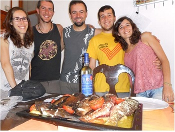 “L’equip Gongon” (l’equip de biòlegs i investigadors que som a Cap Verd estudiant aquest ocell) es prepara per un bon àpat de peix fresc de Cap Verd, on la majoria de pesqueries artesanals que treballen al voltant de les illes encara són sostenibles. D’esquerra a dreta la Marina, el David, el Sergi, l’Adrià i la Laura. A la safata “Garoupas” (Cephalopholis taeniops), “Bidiãos” (Sparisoma sp.) i un peix ciruja (Acanthurus monroviae). Voleu conèixer la fauna marina de Cap verd? Visiteu aquesta estupenda guia virtual!