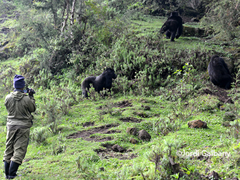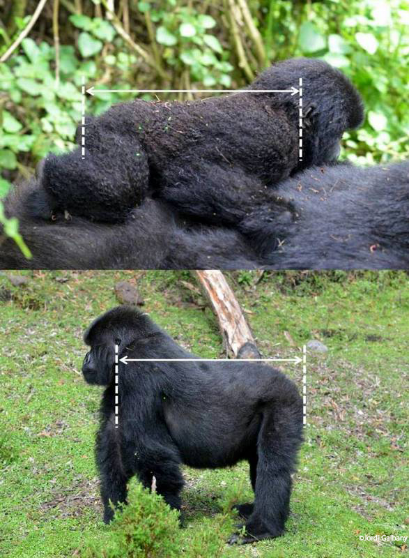 Una altra possibilitat és obtenir informació morfològica. A partir de fotografies podem determinar la forma de la cara i altres parts del cos, comptabilitzar el número de dents i fins i tot obtenir les mesures reals de diverses parts corporals dels goril·les.  Des del “Center for the Advanced Study of Hominid Paleobiology”, a la Universitat The George Washington, ens dediquem bàsicament a prendre fotografies (quan la vegetació densa no ens ho impedeix) de tots els goril·les per tal d’obtenir diverses mesures corporals reals, mitjançant mètodes fotogramètrics. En essència, utilitzem tècniques que ens permeten establir quina és l’escala de cada fotografia, i així podem obtenir la mesura real de diferents parts del cos.