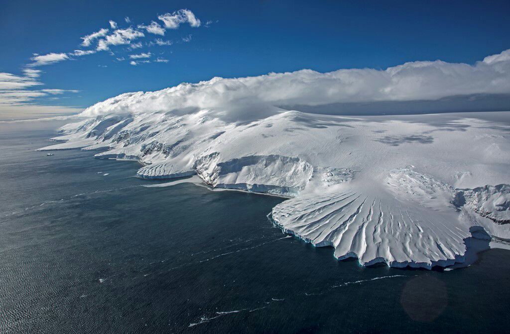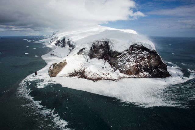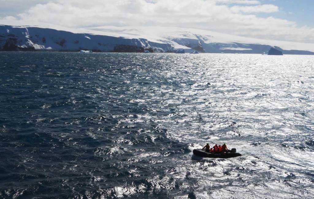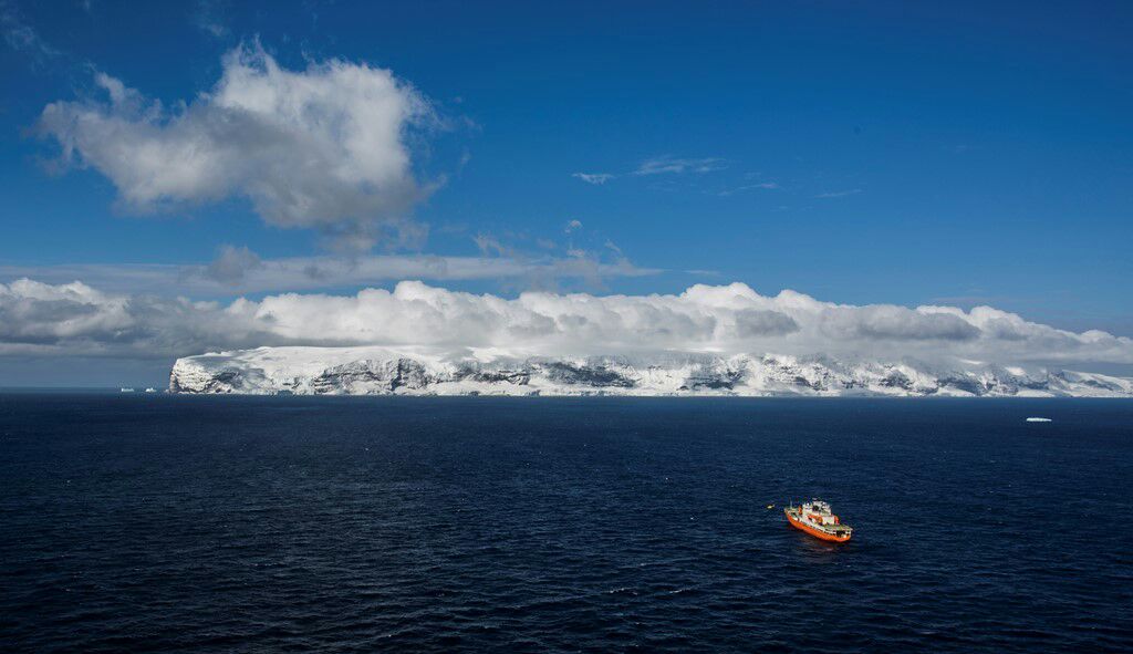 Imatge: L’Akademik Tryoshnikov davant l’illa de Buckle (font: Noé Sardet, PARAFILMS/EPFL)