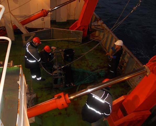 Arribada d’una pesca de ròssec nocturna (l’art de ròssec que es fa servir per a mostrejar els organismes dels fons marins).
