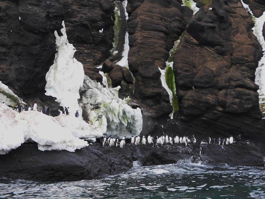 A més, hi ha hagut temps per portar gairebé tothom amb les zodíacs a veure els pingüins d’Adèlia en les seves colònies sobre la roca. Aquests pingüins fan els nius amb pedretes sobre terreny sense neu. Per això, les poques vegades que trobem roques negres entre tant de glaç, solen estar plenes de pingüins. Ara és temps que les colònies es vagin buidant, després que s’estigui acabant l’estació de creixement dels polls. Des de novembre, els polls han estat alimentats pels pares, que surten a menjar krill i els el regurgiten a la boca. Quan arriba aquest temps, tots els pingüins ja han de fer vida d’adult i llançar-se a l’aigua per procurar-se el menjar. Veiem molts polls que encara han de perdre part del borrissol; molts d’ells ja no hi seran a temps i quedaran enrere quan tots deixin la colònia. Les skues els sobrevolen, amenaçadores. L’aigua és plena de pingüins morts, flotant. Ja m’hi vaig trobar el 2006: visitar les colònies en aquest temps té un punt agredolç, en què se’t fa evident que en la natura no importa l’individu sinó l’espècie; o la població, si m‘apureu.