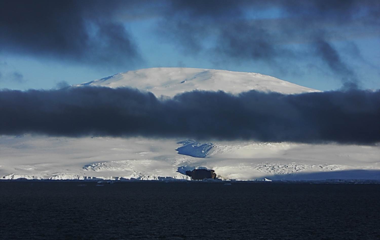 Avui som a 74°S. Difícilment es pot anar més al sud amb vaixell, si no és que s’entra a les entranyes del Mar de Ross, on hi ha l’enorme base americana de McMurdo. Som al peu del Mount Siple, un volcà inactiu de 3.110 m arran de mar. Ahir intuíem la presència del volcà quan vèiem el pendent de les glaceres que baixaven d’entre els núvols. Avui el cel s’ha anat aclarint i hem vist el con sencer, fins al cim. És difícil fer-se una idea de les dimensions, aquí baix, em falten les referències que tinc incorporades per al Pirineu i els Alps.