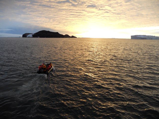 Imatge: Zòdiac camí de l’illa de Lauff, a la posta