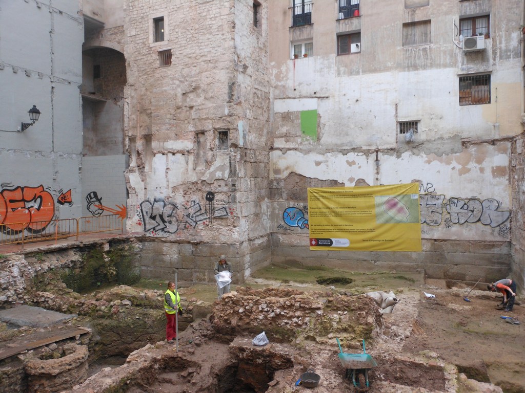 Ja, per acabar, insistir amb la importància de la localització del fossat de la muralla, un gran retall que l’envoltava ja en època de l’emperador August, i que després va ser remodelat en construir la nova muralla al segle III. A banda de la seva funció, com a element defensiu, que també ho era, la seva importància era com element de desguàs i claveguera de la ciutat. El material recuperat ens permet veure la seva sedimentació, comprovar que de tant en tant, es buidava i netejava, i que el darrer rebliment va ser lent, en relació a la propera Riera de Sant Joan, actual Via Laietana, i les deposicions de les clavegueres de la ciutat.