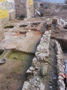 Com ja vam comentar, el fossat feia les funcions de claveguera, i aquesta gran conducció que s’ha documentat, segurament era una claveguera que desguassava al fossat, tot i que té un traçat paral·lel.