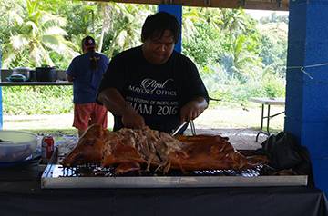 Anem a visitar a l ‘alcalde de la comunitat que també està molt content de veuren’s i ens diu que ens ajudarà en tot el que pugui. Comencem a analitzar el lloc i establir les prioritats de l’excavació: necessitem comprar pics, pales, bosses de plàstic, cintes mètriques… mentre fem llista… sentim música i la veu forta de l’alcalde que ens convida a dinar. I quin dinar! Em sembla que ens agradarà excavar a Umatac!
