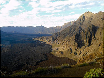 Qui hagi estat en alguna de les seves xerrades i estigui llegint aquestes línies ja deu saber a hores d’ara que estic parlant de l’entranyable Joaquim Montoriol (vegeu-ne aquesta semblança biogràfica, en pdf). Aquest catedràtic de geologia va viatjar per tot el món fent estudis de geologia en una època en que agafar un avió era un luxe només a l’abast dels més rics o dels estudiosos. Les seves inoblidables conferències eren un viatge fascinant a través de la geologia, la biologia i la cultura de cada indret que havia visitat. Amb ell vaig aprendre que les calderes dels volcans es formen de tres maneres diferents: per col·lapse, per explosió o per erosió. La caldera del volcà de Fogo es va formar pel col·lapse i esllavissament de la cara est del volcà, donant lloc a una immensa plana encerclada per majestuosos penya-segats. En aquests penya-segats, la bordeira en nom local, és on crien els petrells Gongon, entre els 1.700 i els 2.100 m d’altitud.