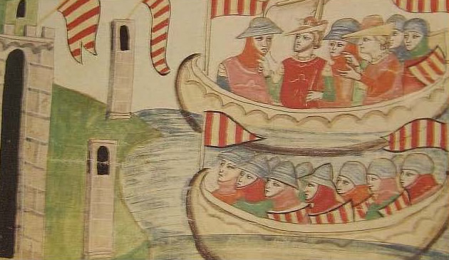 Quan Jaume I narra la sortida de la seva flota des de Salou, recorda sobretot dos fets: la disposició estratègica de les naus i que la mar «semblava blanca de les veles: tant era gran l’estol», és a dir, per una banda, la lògica militar i, per l’altra, la lírica, cristal·litzada en una imatge lligada a l’emoció que devia sentir el rei en aquells moments, just a l’inici de la seva primera gran expedició militar.