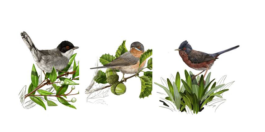 D’esquerra a dreta: tallarol capnegre, tallarol de garriga i tallareta cuallarga. Font: SIOC, ICO.