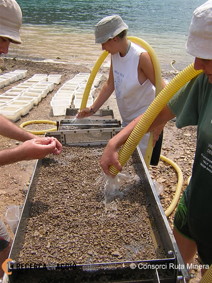 Si, si! Hi ha d’haver aigua per “excavar” microfòssils, perquè no fem servir ni punxons ni bisturís, sinó que utilitzem mànegues i garbells, perquè us feu una idea, és un procediment semblant al que s’utilitza en mineria per separar la ganga de la mena metàl·lica.