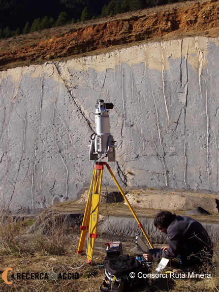 Tal vegada no puguem evitar-ho, però com a mínim hem trobat la manera de poder seguir estudiant el jaciment si es deteriorés: fent un model virtual! Tot va començar en un congrés internacional de paleontologia, que entre les jornades maratonianes de conferències i debats es feia una visita als jaciments de Fumanya i en veure les petjades de dinosaures… justa la fusta, va sorgir la idea: digitalitzar el conjunt paleontològic de Fumanya amb la tecnologia LiDAR tal com havia explicat el Dr. Phillip Lars Manning de la Universitat de Manchester. Aquest seria, doncs, el punt de partida de la col·laboració entre l’equip d’investigador català i l’anglès.