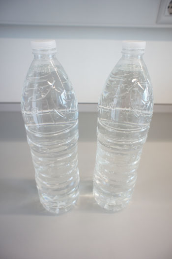 Agafa dues ampolles d’aigua embotellada buides i omple-les d’aigua de mar d’un lloc una mica resguardat, com per exemple un port, així ens assegurem que hi ha un mínim d’algues a les mostres inicials. En una de les ampolles afegeix-li unes gotes de líquid fertilitzant per abonar plantes i posa-la en un lloc càlid i ben il·luminat, per exemple, darrera d’una finestra; a l’altra no li afegeixis res i posa-la a les fosques (tapa-la amb paper d’alumini).