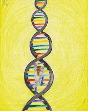 Una investigadora puja, d’esquenes, per una escala feta d’ADN. El dibuix es titula “Escalada del coneixement”, ha estat fet per Anna Petit (1999) i és una de les 26 obres distingides pel concurs “Dibuixa a un científic o científica”, que fa poc ha donat a conèixer els seus guardons.