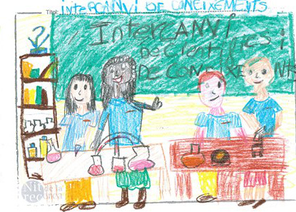 Per exemple, el dibuix de Marina Segarra (1999) es titula “Intercanvi de persones i de coneixements”. Pablo Prieto (1999) dibuixa com diverses persones analitzen una mateixa realitat des de perspectives diferents. I Carlota Olmos (2000) visualitza que ser científic no es pas una tasca fàcil.