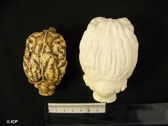 Per poder provar aquesta hipòtesi, necessitaria el cervell de la cabra nana, però com que Myotragus és una espècie fòssil, aquesta part no es conserva. Tanmateix, la part interna del crani conserva les marques de la part externa del cervell. I podem analitzar aquestes marques utilitzant motlles endocraneals (veure foto).