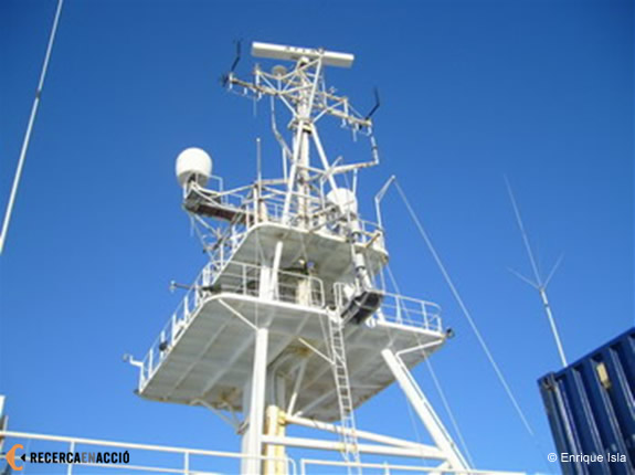 En una expedició polar és molt important conèixer la intensitat de la cobertura del gel i les condicions meteorològiques de la zona a la qual pretenem accedir. Observant l’horitzó des del vaixell és impossible saber com seran les condicions climatològiques a cents de quilòmetres de distància. Malgrat tot, el vaixell compta amb un sistema de comunicacions via satèl·lit que ens permet rebre informació meteorològica contínuament. Així, cada dia un meteoròleg ens explica el pronòstic climatològic i el pla de la campanya es va ajustant tenint en compte aquesta informació. Per exemple, en arribar a la badia d’Atka, enfront de la base alemanya de Neumayer, una capa de gel molt gruixuda ens va deixar immòbils. Mercès a les imatges rebudes via satèl·lit vàrem poder emprendre una ruta alternativa per tal d’accedir a la zona propera a la base.