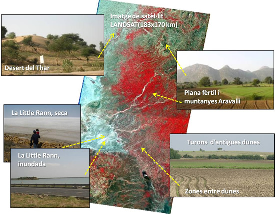 El caràcter rural del Gujarat del nord, amb molt poca industrialització, ha preservat un paisatge molt poc modificat i, per tant, molt apte per observar-lo amb imatges de satèl·lit, des dels anys 60 fins avui mateix. La teledetecció ens permet, d’una banda, entendre molt millor les unitats geològiques de la regió i detectar possibles dunes a on potser  trobarem nous jaciments. De l’altra, tot i fixar-nos en un paisatge actual, els elements fòssils que detectem (dunes, antics canals de rius o antics llacs) ens permeten fer les primeres aproximacions sobre com ha pogut canviar el paisatge al llarg del temps.