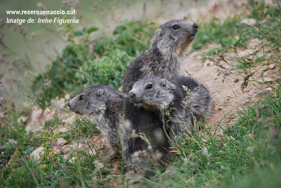 Els marmotons, inconscients encara dels perills, es mostren molt confiats i es deixen acostar fins a menys d’un pam. Tot i això, en pocs dies aprendran a identificar els perills i ja no ens permetran tanta proximitat. Tot just estan aprenent a moure’s fora del cau, i comencen a tastar les herbes del prat per primera vegada; tot plegat de forma força maldestra que resulta molt divertida.