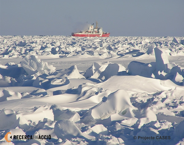 llum poden viure peixos i foques, guineus i óssos. I és clar, el mosaic que us comentava és molt important per les algues. Si hi ha molt gruix de gel amb molta neu a sobre, hi arribarà poca llum a les algues i no podran créixer gaire. Si hi ha aigua oberta, en canvi, podran créixer molt més de pressa, i si hi ha gel sense neu a sobre, podran créixer algues a dins del gel. Precisament per això ens interessa fer aquesta campanya al bell mig del mosaic blanc-i-blau, per poder estudiar les activitats d’aquestes algues i dels altres microorganismes que les acompanyen en totes les condicions possibles.