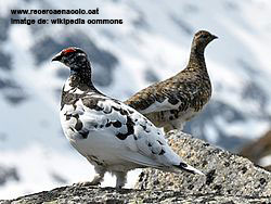 La perdiu blanca (Lagopus mutus) és una espècie escassa que viu al Pirineu per sobre dels 2.100 metres. La població catalana s’estima en unes 222 a 370 parelles. Imatge: wikipedia commons.