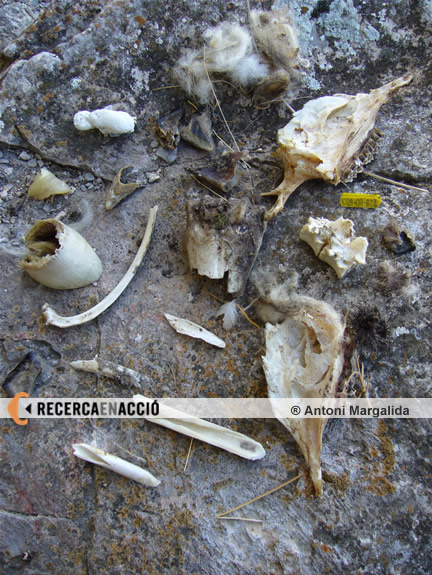 Més de la meitat de les parelles de trencalòs que inicien la reproducció cada any acostumen a fracassar per diversos motius. Una de les actuacions que duem a terme sistemàticament és baixar als nius on s’ha produït un fracàs per tal de recollir totes les restes que trobem i fer anàlisis que ens permetin esbrinar els motius que han provocat el fracàs reproductor.