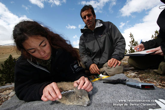 Quan capturem una marmota li prenem un seguit de mesures morfològiques i mostres de pèl per fer anàlisis genètiques. Imatge: Bernat Claramunt