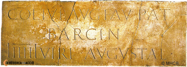 Així, va ser durant unes intervencions arqueològiques efectuades a la Plaça Sant Miquel de Barcelona que va aparèixer una important inscripció,  on uns senadors, els Minicii Natales, feien donació per a la ciutat d’unes termes públiques (banys). Va ser gràcies a aquest epígraf que vam poder corroborar i constatar del cert el nom complet de la nostra ciutat en temps dels romans…