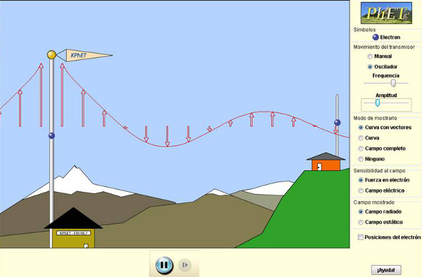 Per començar d’una manera senzilla, la simulació Ones en una corda ajuda a visualitzar conceptes com ara freqüència i amplitud del moviment ondulatori. A la simulació Ones de ràdio veiem com es transmeten les ones electromagnètiques a través de l’atmosfera (Mercè Griñó va elaborar un guió per als alumnes i per al professor sobre la simulació de les ones de ràdio que es va publicar a la revista Recursos de física nª10, el qual és accessible fent clic aquí).
