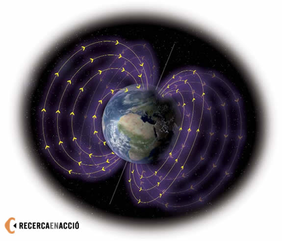 La Terra està dividida en l’hemisferi nord i l’hemisferi sud. L’eix de rotació de la Terra travessa tots dos hemisferis pel seu centre geomètric, des dels punts anomenats “pols geogràfics”, d’aquesta manera existeix un pol nord i un pol sud. El nostre planeta es comporta com un gran imant que genera un camp magnètic que l’envolta, i els pols magnètics coincideixen quasi exactament amb els pols geogràfics. Gràcies a aquest camp de forces, les agulles magnètiques de les brúixoles s’orienten i ens assenyalen el pol nord. D’altra banda, el camp magnètic terrestre no sempre ha estat com l’observem actualment, cada cert temps (milers o milions d’anys) el camp magnètic pateix una inversió, és a dir, el pol nord magnètic se situa en el pol geogràfic sud i viceversa. Si poguéssim viatjar al passat, en els períodes quan el camp magnètic fos invers l’agulla de la nostra brúixola ens assenyalaria el pol sud.