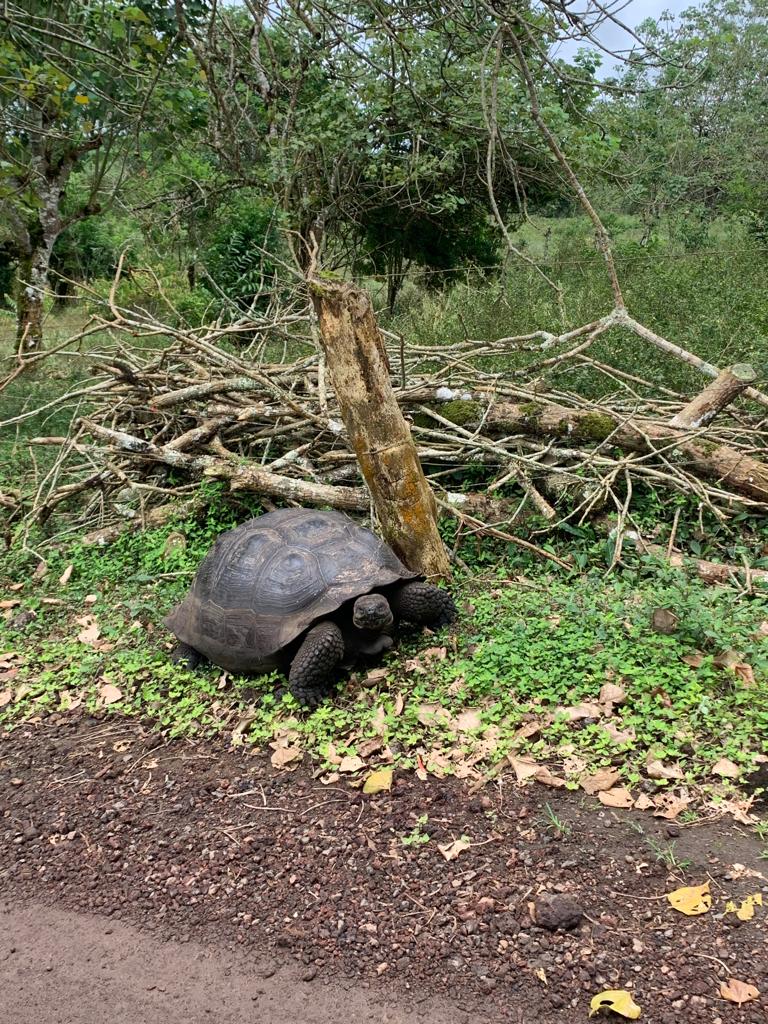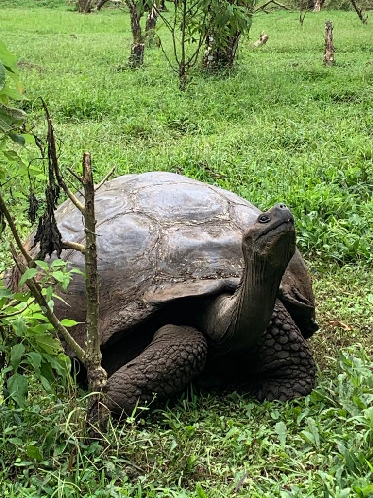Una darrera visita abans de marxar! No podríem embarcar sense haver vist abans les tortugues gegants de Galápagos. Ens dirigim al ranxo el Chato, on viu una de les moltes poblacions de tortugues gegants en llibertat. Entre el verd i la frondositat de l’indret observem diversos individus, els quals porten una vida sense complicacions, pasturen herba, fulles i cactus, prenen el sol i descansen durant gairebé 16 hores al dia. Tenen el rècord de ser les més longeves de tots els vertebrats – amb una mitjana de vida de més de 100 anys i les més grans de totes les tortugues, arribant a pesar els 400 kg.