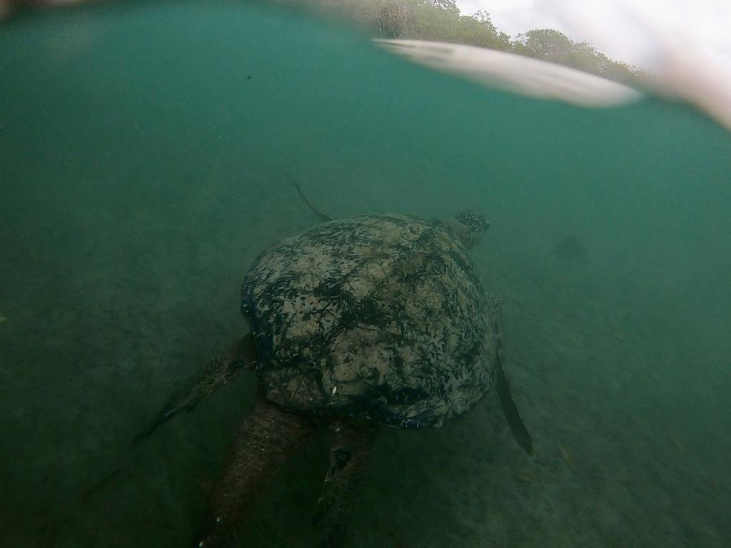 Com que no les volíem destorbar, no ens hi vam acostar, però sí que vam poder veure diversos individus de mides diferents. Els guies ens van explicar que, com a màxim, poden fer de 60 a 90 cm d’alçada, 150 cm de closca i pesar fins a 400 kg. Alhora, són un dels animals més longeus del planeta, i poden arribar a viure més de 150 anys.