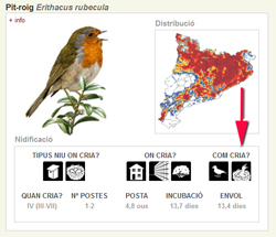 Si mirem la fitxa del pit-roig, per exemple, veiem la informació corresponent amb el símbol del poll nidícola.