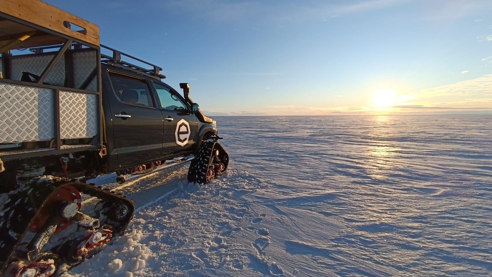 Els meus companys de viatge eren la Paula, una enginyera química que estudia els contaminants de la neu, i en Manu, el guia polar, que es dedicava a conduir, muntar el campament i ajudar-nos. Vam fer l’expedició amb un vehicle especial per a neu anomenat Hilux.