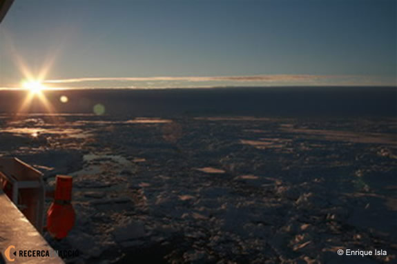 El passat 3 de desembre, aproximadament a les 22:00 hores, vàrem traspassar la latitud de 66º 33’S, o sigui, el Cercle Polar Antàrtic. La inclinació de l’eix terrestre (24º 27’) determina la posició exacta dels Cercles Polars Àrtic i Antàrtic. Aquests, a la vegada, delimiten regions caracteritzades, a determinades èpoques de l’any, per dies sense nits o completament obscurs. A l’hemisferi sud ara estem a la primavera i falta molt poc perquè arribi el dia més llarg de l’any, el 21 de desembre (el solstici d’estiu, aquí).