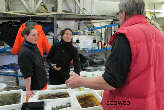 Els especialistes en bentos s’afanyen a recollir les seves mostres a la coberta de popa del Polarstern