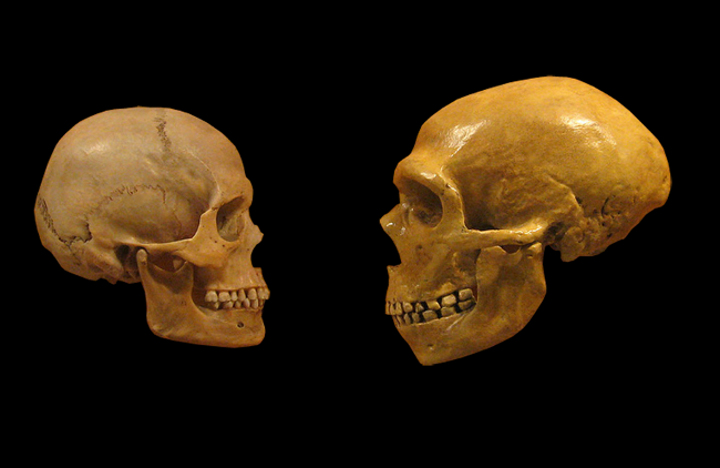 Un 2,5% del genoma dels humans no-africans deriva dels neandertals. Fins a la consecució del genoma neandertal, al 2010, l’opinió majoritària entre els paleontòlegs i genetistes era que ambdós grups no s’havien encreuat perquè els genomes mitocondrials (recordem que l’ADN mitocondrial s’hereta exclusivament per línia materna) d’ambdós són clarament diferents. No obstant això, l’anàlisi genòmica va demostrar que al voltant d’un 2,5% del genoma de tots els humans moderns no-africans (és a dir, europeus, asiàtics, melanesis i amerindis) deriva dels neandertals. L’explicació més plausible és que aquests es van encreuar amb alguns humans moderns fa entre 50.000 i 60.000 anys, probablement en algun punt de l’Orient Mitjà o del Pròxim Orient, on s’han trobat jaciments d’ambdós grups quasi contemporanis.