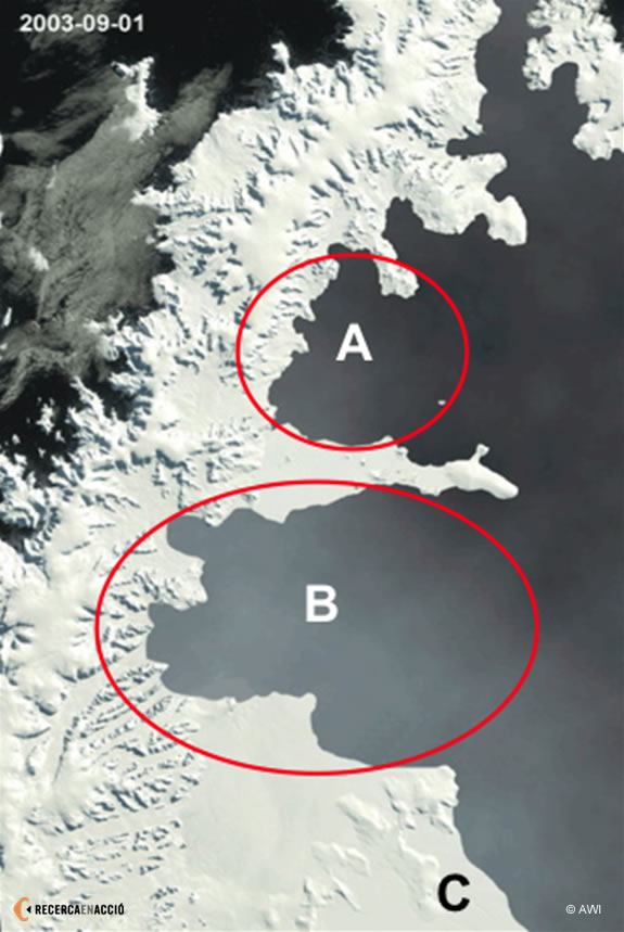 Aquesta zona ha perdut en 20 anys uns 11.000 km2 de plataforma de gel! Si vols comparar, pensa que Catalunya té una superfície de 31.930 km2. El col·lapse d'aquestes plataformes ha generat canvis dràstics en la superfície del mar que comencen a reflexar-se en el sòl marí. Conèixer aquests canvis i associar-los a la resposta de l'ecosistema és l'objectiu principal del projecte CLIMANT .
