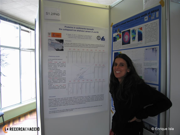 Elisabet Sañé ha publicat els primers resultats del projecte en dues reunions científiques internacionals, on va explicar com les característiques químiques del sediment estan canviant a partir del col·lapse de les plataformes de gel.