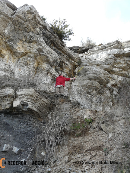 Esbrinar l’ambient per on caminaven els titanosaures comença amb una metodologia bàsica, que és l’observació en el camp. Proveïts d’un senzill equip instrumental, com martell, lupa, brúixola, metre, farem el reconeixement dels diferents tipus de roques sedimentàries, mesurarem el gruix de cada capa de roca i dibuixarem l’ordre en què afloren en el camp. També anotarem les característiques de cada capa com la litologia, el color, la textura, les estructures sedimentàries, els fòssils… De la qualitat d’aquestes dades dependrà la fiabilitat de les interpretacions posterior que farem del medi sedimentari.