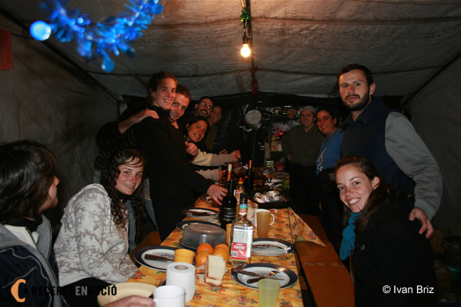 A mig matí, l’excavació s’atura per a fer un “calenterio” (un refrigeri no seria gens benvingut: segons les darreres dades d’Ushuaia, tot i que la temperatura és d’uns 4º, si hi afegim les variables del vent i la humitat (portem ja 4 dies de pluja…), la sensació tèrmica és d’uns 6º sota zero): begudes calentes i galetes.