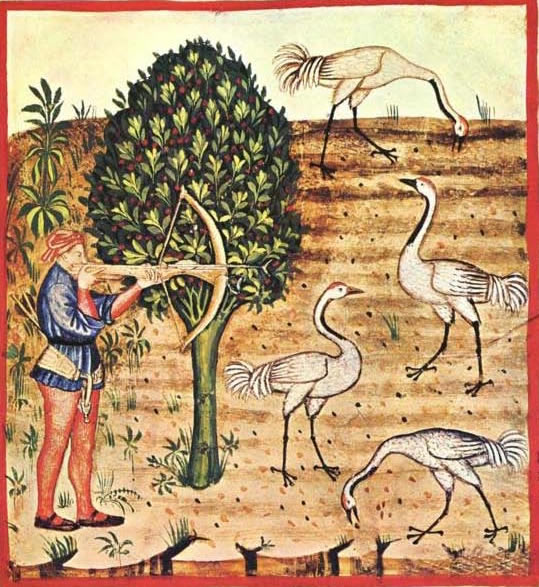 Ho il·lustra molt bé l’episodi de la grua, una au que en aquells moments, a diferència dels nostres, era molt apreciada tant a la taula dels cristians com a la dels musulmans. Davant les muralles d’Almenara Jaume I caça amb els seus magnífics falcons ‘gruers’ una grua, però, bon diplomàtic com és, no deixa que els falcons la matin per poder-la enviar viva als seus interlocutors d’Almenara perquè la puguin sacrificar a l’estil musulmà i menjar-se-la al seu gust.