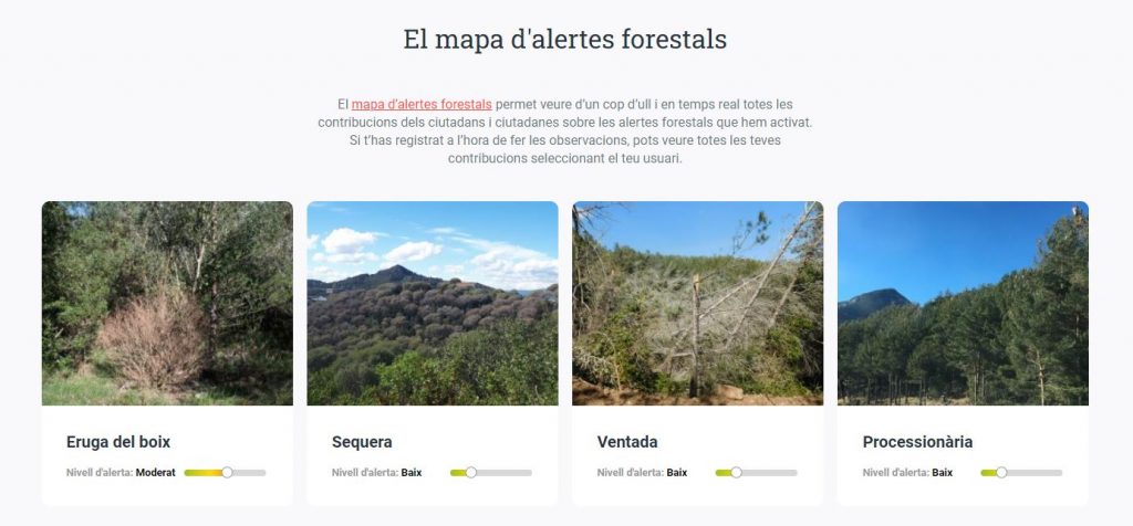 Alerta Forestal és un projecte de ciència ciutadana que pretén analitzar l’estat de salut actual dels boscos de Catalunya i preveure per mitjà de models de simulació com serà l’estat de salut d’aquests boscos en el futur, tenint en compte el canvi climàtic i altres canvis ambientals que s’estan produint a escala global i local. El projecte està obert a la participació dels ciutadans i les ciutadanes, que són els encarregats i encarregades de recollir dades sobre els fenòmens que afecten la salut dels boscos catalans, com plagues, sequeres, ventades, etc