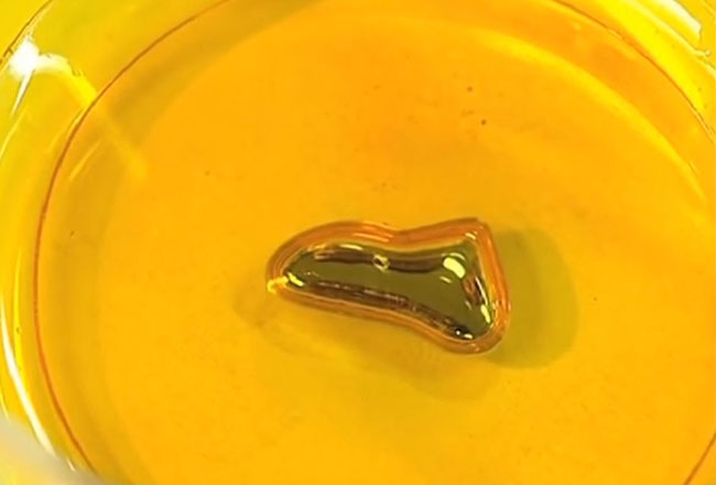 El gal•li és un element químic amb un punt de fusió molt baix. En presència d’un oxidant, la gota de gal•li s’eixampla i es contreu movent-se a batecs.